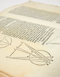 La Perspectiva Communis est un des premiers traités de perspective et d'optique, et le premier livre de science “moderne” avec l'édition originale des Éléments d'Euclide.