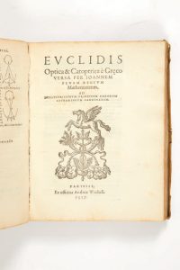 Édition originale de la révision du texte de Peckham par Pascasius Hamellius, nom latin pour Pascasio Duhamel, mathématicien français employé à la cour du roi. Finement imprimée et illustrée de nombreuses gravures sur bois, elle est ornée de la marque de l'imprimeur sur le titre et nombreux schémas dans le texte.