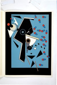 Les belles lithographies sont inspirées des oeuvres de Vasarely et décrivent des formes géométriques, parfois animées de personnages, dans l'espace.
