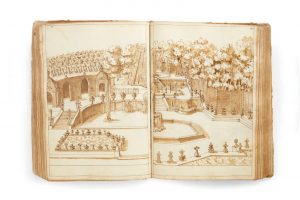 Very beautiful an intriguing Italian architectural manuscript. It opens with a a short introduction into practical geometry and surveying, ballistics, proportions and harmony of music, followed by an accomplished manual on architecture and perspective, most likely created by a professional draughtsman or architect. The details given in some of the architectural drawings might suggest this being a promotional work that its author would use as to show his ability and art to attract future contracts. The most beautiful drawings concern the building and the garden of the famous Villa Pamphilia (pp. 143-157), others show St. Peter in Rome (pp. 75-76).