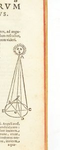 “Maurolico did important work in optics; indeed, according to Libri, «it is in his research on optics, above all, that Maurolico showed the most sagacity». The chief record of his research is Photismi de lumine et umbra, in which Maurolico discussed the rainbow, the theory of vision, the effects of lenses, the principal phenomena of dioptrics and catoptrics, radiant heat, photometry, and caustics... Sarton suggested that [Photismi] might be the most remarkable optical treatise of the sixteenth century outside the tradition of Alhazen, or even the best optical work of the Renaissance” (DSB).
