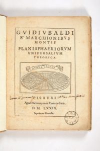 First edition of this work on the planisphere. “Guidobaldo was a proeminent figure in the renaissance of mathematical sciences (...). [His] first book, the Liber mechanicorum (1577) was regarded by contemporaries as the greatest work on statics since the Greeks. (...) [He] was Galileo's patron and friend for twenty years and was possibly the greatest single influence on the mechanics of Galileo.” (DSB).