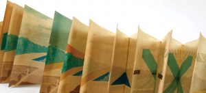 Repro Memento. Kevin Osborn au Writer's Center Offset Works, 1980. In-4 de forme trapézoïdale (283 x 143) dépliant en accordéon de 16 ff.n.ch. sur papier calque rigide, ornés de reproductions de photographies imprimées en couleurs.