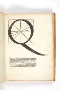 First and only edition of one of the richest sources for studying the interplay of mathematics, art and architectural theory and typography during the High Renaissance by the mathematician Luca Pacioli, with illustrations designed by Leonardo da Vinci.