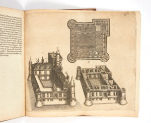 Second edition in French, with seven added illustrations and a different engraved title border (the first 1601 edition with a view of a siege o f Paris and a portrait of King Henry IV. The 29 plates depict fortifications, façades, gardens, war machines, etc.