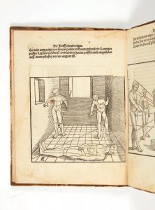 Unnderweissung der Proportzion unnd Stellung der Possen, liegent unnd stehend ab gestohlen wie man das vor Augen sicht. Nuremberg, Christoph Zell wonhafft bey dem Rosenbad, 1540-1542. In-4 (200 x 153 mm) de 24 ff.n.ch. Collation: A-F4 (D3 et F3 en facsimile); demi veau à coins (reliure germanique du XVIIIe siècle).