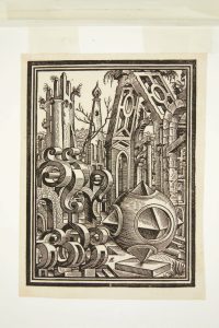 Extremely rare first edition, complete, of this model book of imaginary ruins by the Nuremberg painter Lorenz Stoer. His woodcuts contain brilliant constructions of abstract geometrical figures, with both set in landscapes in a three-dimensional manner.