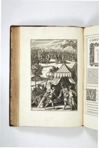 Très bel ouvrage baroque, décrivant des costumes, des scènes de bataille, des vues et plans de la riche architecture vénitienne. Ce Poème héroïque célèbre la création de Venise en 24 chants dont chacun est illustré d'une très belle gravure; celle crée pour le septième chant contient la représentation d'un télescope. Publié d'abord en 1621 il s'agit ici de la seconde édition.