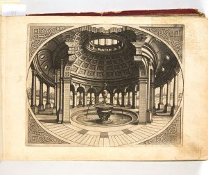 - [Fontaines et puits d'eau]. [Anvers], Philipp Galles [1573]. Suite de 24 planches gravées, numérotées, la première signée dans la plaque par Vredeman de Vries et Philip Galle. (Planches anciennement montées). Les planches montrent de puits et fontaines d'eau, souvent construits avec un ingénieux système mécanique et placées dans un beau décor avec de magnifiques vues de villes mises en perspective. Hollstein, Etchings, XLVIII, 384-407 (état 2, sur 3); Kat. Berlin, 3573 (comme ici sans le feuillet de dédicace à Melchior Lorch).
