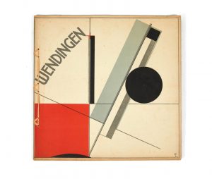 Lloyd Wright]. Amsterdam, Wijdeveld, 1921. In-4 (332 x 332 mm) de 38 pp., typographie et desing par Theodorus Wijdevelt, couverture originale ornée d'une lithographie suprématiste d'El Lissitzky; broché, couture originale de raphia intacte.
