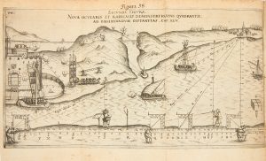 Fine Sammelband on instruments, surveying, and drafting. The very rare work by Hulsius describes for the first time the drafting instrument invented by the Swiss Joost Bürgi, mathematician and instrumentmaker to the Emperor Rudolph II. The instrument, illustrated on one of the title pages, is a proportional compass or sector and it is extensively described in the text, giving a host of applications, from such specialized operations as taking measurements for maps, the construction of maps and globes, to varying the distances between given points necessary for the construction and modification of perspective.