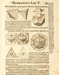 "Harmonices Mundi represent Kepler's attempt to discover God's archetypal model of the universe in the simple mathematical ratios embodied in the five regular polyhedrons, in the laws of musical harmony (...), in his own theory of astrological aspects, and in the planetary system he had proposed in Mysterium cosmographicum (1596), in which the mean distances of the planets from the sun were in proportions related to spheres inscribing and circumscribing the five regular solids. Book I, devoted to investigation of polygons and polyhedrons, introduced the great and small stellated dodecahedrons, rediscovered in 1810 by
