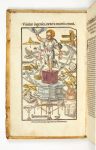 II; 4 ff.n.ch., XLVII ff.ch., 1 f.n.ch. (bois allégorique), IX ff.ch., 1 f.n.ch. (blanc) pour la partie III; 3 ff.n.ch., XIX, XII ff.ch. pour la partie IV; peau de truie sur ais de bois biseautés, décor à froid, dos à nerfs, traces de fermoirs (reliure de l' époque).