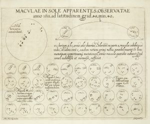 Après avoir construit son premier télescope, Scheiner commença ses observations en mars 1611 et détecta la présence de tâches sur le soleil. Il revendiqua alors sa découverte comme antérieure à celle de Galilée.