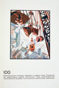 Les illustrations de ses fantaisies architecturales n'ont rien perdu de leur force et modernité, et montrent des projets de constructions de la grande période soviétique. Les belles planches en couleurs sont pour la plupart consacrées aux constructions industrielles.