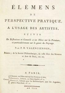 Élémens de perspective pratique, à l'usage des artistes, suivis de réflexions et conseils à un élève sur la peinture, et particulièrement sur le genre du paysage. Paris, chez l'auteur, Desenne, Duprat, An VIII [1799]. In-4 (250 x 190 mm) de 2 ff.n.ch., XXIX pp., 1 f.n.ch., 644, XII pp., 36 planches gravées dépliantes; basane brune, dos à nerfs orné, tranches marbrées (reliure de l'époque).