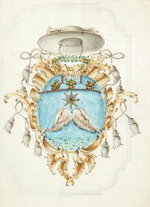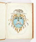 Physica. [Manuscrit]. Bologne, [vers 1730]. Manuscrit in-4 (248 x 185 mm) de 344 ff.n.ch. dont 2 blancs, le premier feuillet avec des armoiries montrant des ailes surmontées des attributs d'un cardinal; manuscrit sur papier rédigé à l'encre brune, 89 dessins originaux rehaussées à l'aquarelle sur 35 pages; vélin ivoire, pièce de titre indiquant le nom "Vogli" (reliure de l' époque).