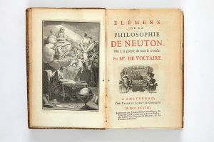 Elemens de la philosophie de Neuton, mis à la portée de tout le monde. Augmentée des eclaircissemens necessaires, du chapitre XXVI, contenant le Flux et Reflux, des Tables des chapitres et matières & du portrait de Neuton. Amsterdam, Etienne Ledet, 1738.