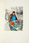 L'exemplaire est en outre enrichi : - de 2 dessins originaux mis en couleurs à l'aquarelle, l'un représentant Crainquebille poussant sa charrette de marchand des quatre saisons, l'autre représentant une jeune mère discutant dans la rue. L'un et l'autre, de mêmes dimensions (189 x 149 mm), sont signés «Steinlen» à l'encre de Chine, en bas à droite; - de 5 dessins supplémentaires sur le thème du livre (sur 4 ff.), placés à la suite de la collection des dessins originaux et des suites (l'un est accompagné de sa gravure correspondante tirée sur chine); - d'une LAS d'Édouard Pelletan à [Félix Leseur] (2 pp. in-12 à l'encre noire sur papier vert à l'en-tête des éditions E. Pelletan, datées «26 juillet 1902»): il lui donne les raisons pour lesquelles il a décidé de ne pas faire signer les planches des exemplaires de luxe par les graveurs (sic); - de 2 ex. du carton d'invitation pour l'exposition de décembre 1900 des dessins de Steinlen pour le livre; - du prospectus du souscription.