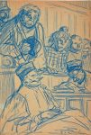 Léon Marotte ?]», a été partiellement gommée; - d'un dessin à pleine page représentant Crainquebille présentant ses produits à des clientes. Crayon bleu, crayon sur calque