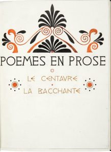 Poèmes en prose. Paris, Pelletan, 1901, grand in-4°, maroquin bleu janséniste, dos à nerfs, doublure de maroquin havane sertie d'une large guirlande florale mosaïquée de maroquin vert, couverture, tranches dorées sur témoin, étui gainé de même maroquin (Marius Michel).