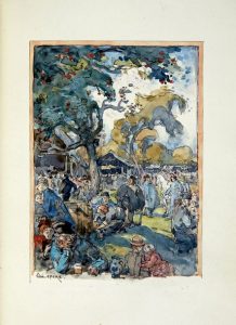 Exemplaire enrichi d'une SUPERBE AQUARELLE ORIGINALE d'Auguste Lepère représentant une scène de foire sous les arbres, vue de l'une des tentes-buvettes (150 x 111 mm).