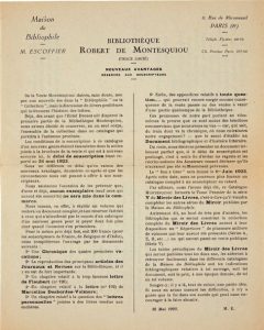 Bibliothèque de Robert de Montesquiou. Première vente. Deuxième vente. Troisième vente. Paris, 1923-1924, 3 vol., in-4° ou in-8°, couverture, cartonnage [(J.-J. Deruti)].
