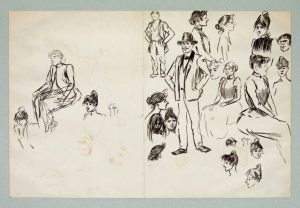 Feuille de croquis recto-verso, à l'encre de Chine, sur papier type «Johannot».