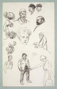 Feuille de croquis au crayon et au crayon gras, recto seul, sur papier type «Johannot».