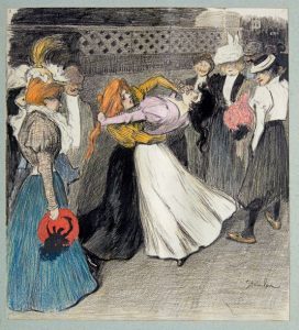 Dessin original pour «Sur le pont Caulaincourt», nouvelle d'Oscar Méténier.