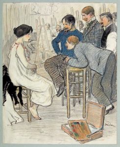 Dessin original pour «À l'atelier», nouvelle de Georges Courteline.