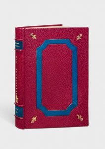 Les Princesses. Paris, Ferroud, 1904. Grand in-8, maroquin bordeaux, encadrement de maroquin bleu sur le premier plat avec fleurons dorés en écoinçon, médaillon de maroquin bleu sur le second plat portant un aigle couronné doré, dos orné des pièces de titre, de date et de lieu de maroquin bleu, doublure et gardes de moire ivoire, couverture et dos, non rogné (Reliure moderne). Édition illustrée de 24 compositions dont 21 hors texte par Georges Rochegrosse, gravées à l’eau-forte, et d’encadrements en bistre aux pages de texte.