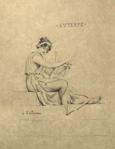 Tirage à 226 exemplaires, celui-ci un des 25 sur japon contenant 3 états des eaux-fortes, dont l'eau-forte pure et un état avec remarque en bistre, et un dessin original au crayon signé de Fournier figurant La muse Euterpe (9 x 9 cm), il n'est pas repris dans l'illustration.