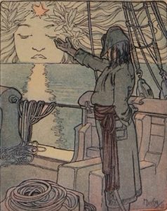 Clio. Paris, Calmann Lévy, 1900. In-12 maroquin framboise janséniste, dos orné du titre et auteur dorés, roulette dorée sur les coupes, dentelle dorée intérieure, tranches dorées (G. Hedberg). Édition originale, imprimée sur vélin, illustrée de 13 bois en couleurs par Alphonse Mucha.