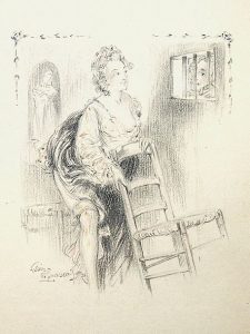 Thémidore ou Mon Histoire et celle de ma maîtresse. S. l., A. Ferroud, F. Ferroud, succr, 1907. In-8, maroquin janséniste rouge, tranches dorées, dentelle intérieure dorée, couverture et dos (Reliure de l'époque). Édition illustrée de 22 lithographies originales en couleurs par Lubin de Beauvais.