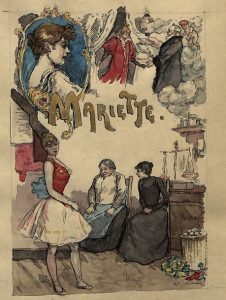 Mariette. Paris, L. Conquet, 1893. In-8, bradel maroquin bleu turquoise à long grain, dos lisse orné d'une petite danseuse en tutu dorée, couverture (E. Carayon). Édition illustrée de 41 compositions d'Henry Somm, dont la couverture.