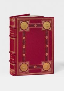 Très bel exemplaire, dont la reliure est orné de 4 médailles allégoriques (Rome Antique, Grèce Antique, Égypte du temps des Pharaons et Italie à la Renaissance) en vermeil exécutées spécialement dans les ateliers de l'Hôtel des Monnaies d'après les dessins de Luc-Olivier Merson, à très petit nombre.