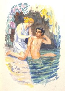 Exemplaire unique sur vélin du Marais ornée de 20 aquarelles originales de Raphaël Drouart. Les illustrations, reliées au fil du texte (chacune environ 20 x 14 cm), sont toutes signées par l'artiste.