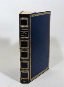 Monna Vanna. Paris, Société du livre d'art, 1907. In-8, maroquin bleu nuit, multiple filet doré sur les plats, dos orné de même, tranches dorées, dentelle dorée intérieure, couverture et dos, étui (Affolter). Édition illustrée de 20 figures par Paul-Albert Laurens, dont un frontispice, 10 compositions dans le texte, 2 hors-texte, 5 bandeaux et 3 initiales gravées sur bois en couleurs.