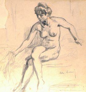 Exemplaire enrichi d'un dessin original au crayon signé d'Alexandre Lunois, contrecollé sur carton : Jeune femme nue, (16 x 15 cm), variante de la vignette de titre.