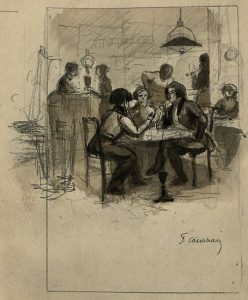 - 3 croquis originaux de François Courboin se rapportant aux 3 premiers en-têtes (12x11, 17x11 et 17x11 cm),