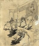 Exemplaire enrichi d’un beau dessin original signé de Daniel Vierge, (26,5 x 18 cm) à l’encre de Chine, rehaussé de lavis, étude pour l’illustration de la p. 134.