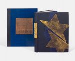 La Marche à l'étoile. Paris, Société des Francs-Bibliophiles, 1946. In-4, bradel maroquin bleu nuit, plats décorés d'une bande mosaïquée semi-reptile, au centre une grande étoile jaune rayée de traces noires mosaïquée et coupée en deux, dos lisse orné d'une pièce de titre jaune, doublure et gardes de papier illustré bleu nuit, couverture et dos, emboîtage de maroquin bleu nuit et bleu canard, doublé de même, premier plat orné du cuivre ayant servi à la gravure p.59 (D.-H. Mercher 2013). Édition illustrée de 11 gravures au burin en noir par Louis-Joseph Soulas.