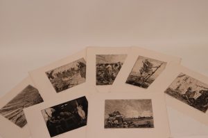 Barbares ! ... [Paris, Sagot, 1914]. In-4, en feuilles, couverture. Suite de 12 sujets gravés à l’eau-forte par Louis Jou. Très belles épreuves sur vélin fort, signées et titrées en pied au crayon. Le premier sujet est repris sur la couverture.