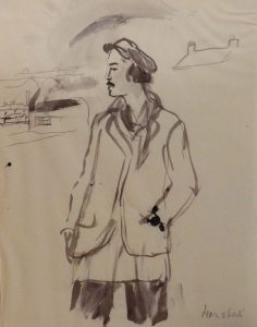 Exemplaire enrichi d'une suite des 60 suites à part de 30 eaux-fortes (toutes signées) de Louise Ibels, en deux états, dont un avec remarques, destinée à compléter l'illustration de l'édition, offerte aux souscripteurs et d'un dessin original à l'encre signé de Jean Oberlé : Homme à la casquette (23,5 x 19,5 cm)