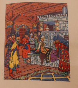 Contes. Paris, Kiefer, 1925. In-8, demi-chagrin à bandes, dos orné du titre doré, couvertures et dos (Reliure de l'époque). Nombreuses illustrations en couleurs de Pierre Rousseau. Texte imprimé en vert.