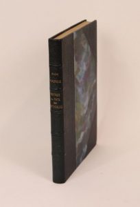 Voyage au pays des Articoles. Paris, La Pléiade, 1927. Petit in-4, demi-maroquin bleu nuit avec coins, couverture et dos (René Kieffer). Édition originale, ornée de 22 eaux-fortes et bois en couleurs par Alexandre Alexeïeff.