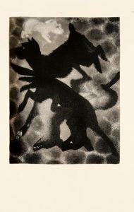 Petits poëmes en prose. Paris, imprimé pour la société du livre d'art, 1934. Petit in-4, maroquin grenat, bordure intérieure ornée de filets dorés et d'un listel de maroquin noir, tranches dorées, couverture et dos, étui (Semet & Plumelle). Édition illustrée de 30 eaux-fortes hors texte d'Alexandre Alexeieff.
