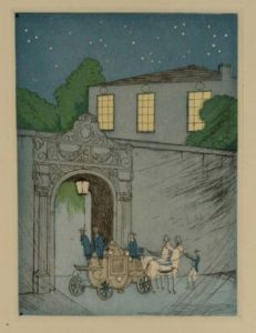 L'Illusion héroïque de Tito Bassi. Paris, La Roseraie, 1925. In-4, broché, couverture, chemise à rabat et étui moderne de demi-maroquin prune. Édition illustrée de 17 eaux-fortes hors texte en couleurs de Charles Martin, dont le titre.