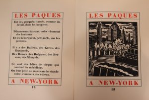 Les Pâques à New-York. Paris, René Kieffer, 1926. In-4, broché. Première édition illustrée de 8 bois dessinés et gravés par Frans Masereel. Impression en rouge et noir.